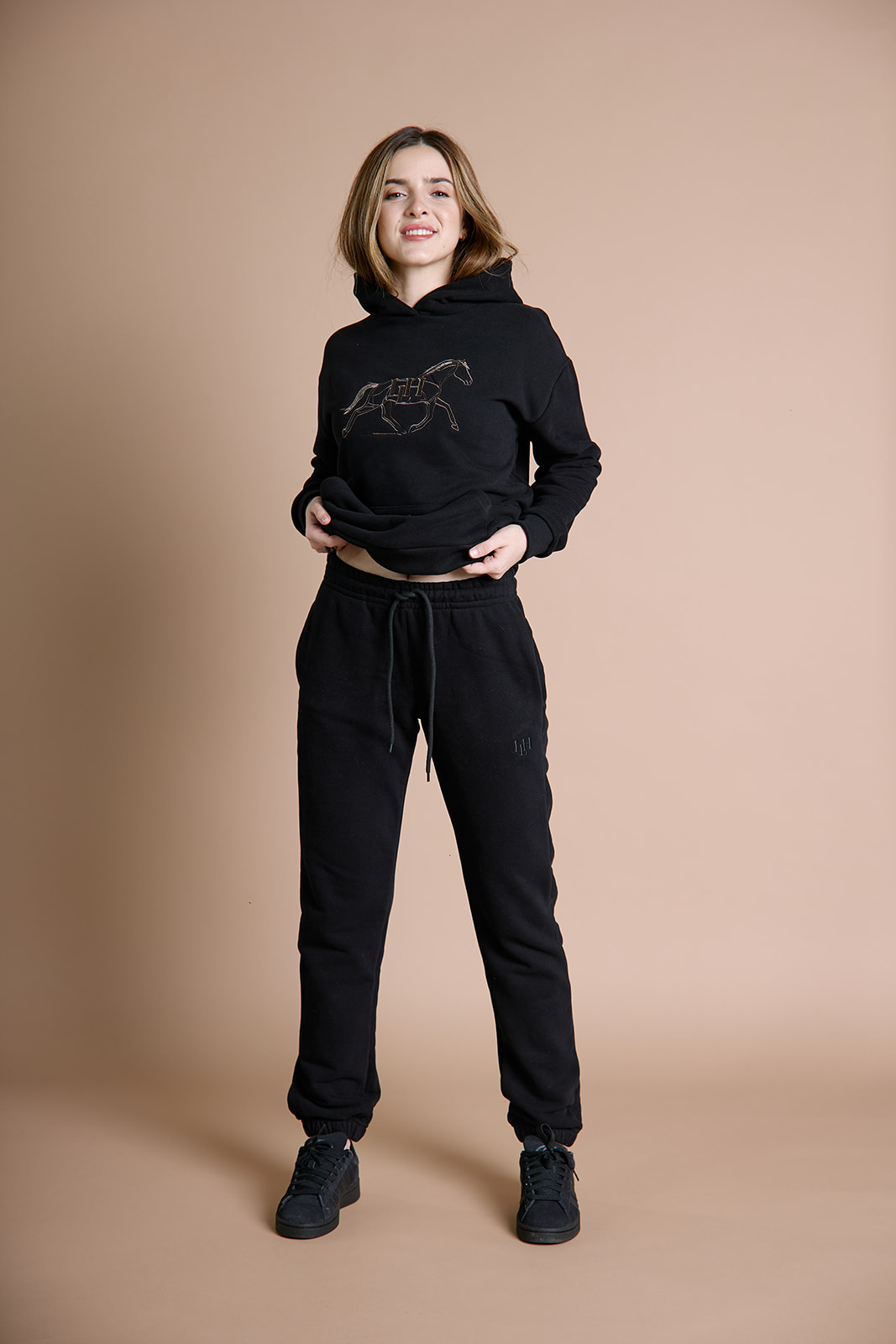 Spodnie LLH to model z prostą nogawką zakończoną ściągaczem, z subtelnym haftem LLH. Spodnie mają dwie kieszenie boczne. Idealnie komponują się z bluzami. Wysokogatunkowa bawełna jest delikatna i gładka w dotyku. Materiał jest dużo bardziej wytrzymały niż zwykła bawełna. Zaprojektowane i uszyte w Polsce z najwyższej jakości polskiej dzianiny wyprodukowanej dla love like horses.